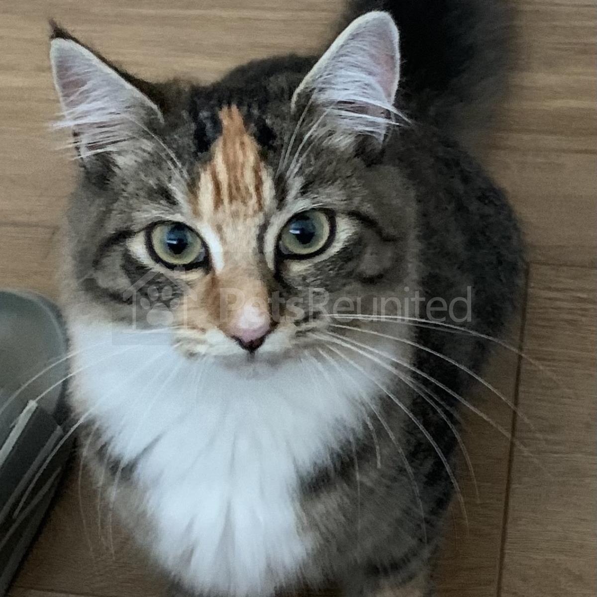 Tortoiseshell and white Domestic Longhair (DLH) cat