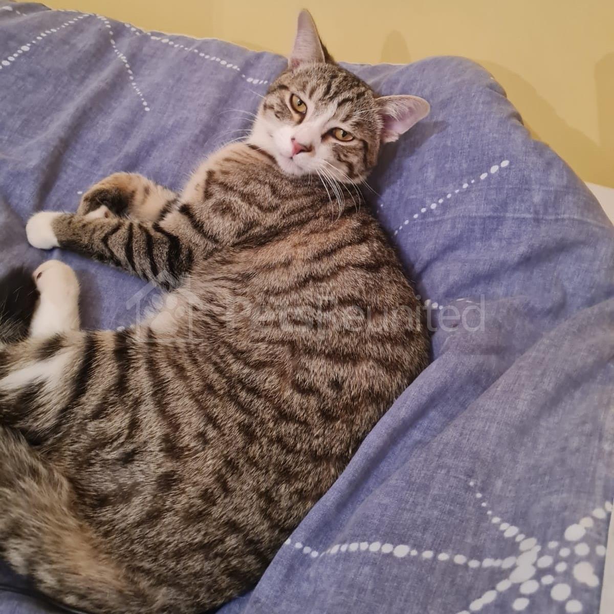 Tabby and white Domestic short-haired cat
