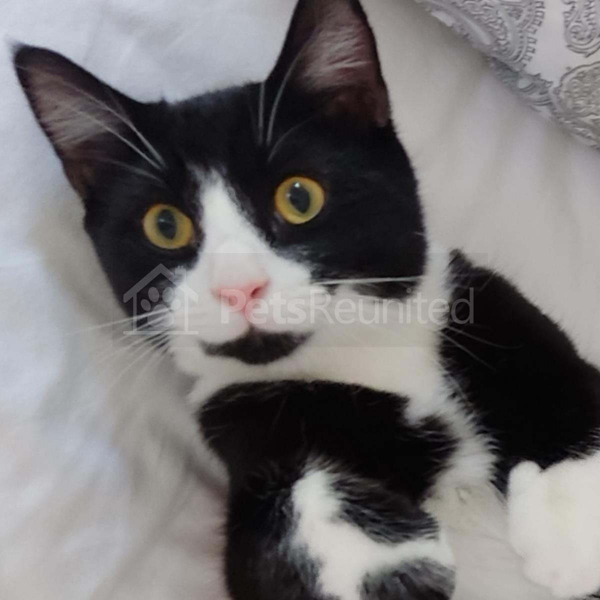 Black and white, black spot on cat