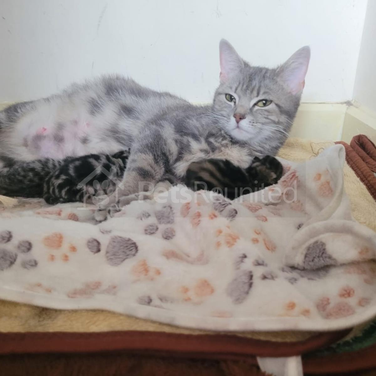 White with brown Moggy (long haired) cat