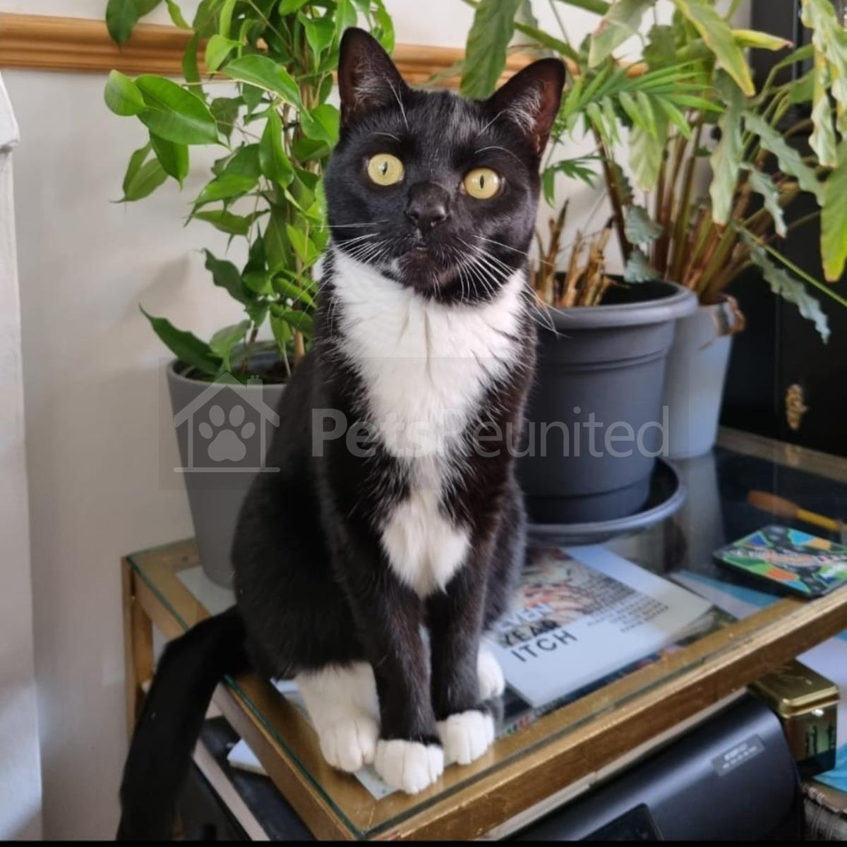 Black and white Domestic short-haired cat