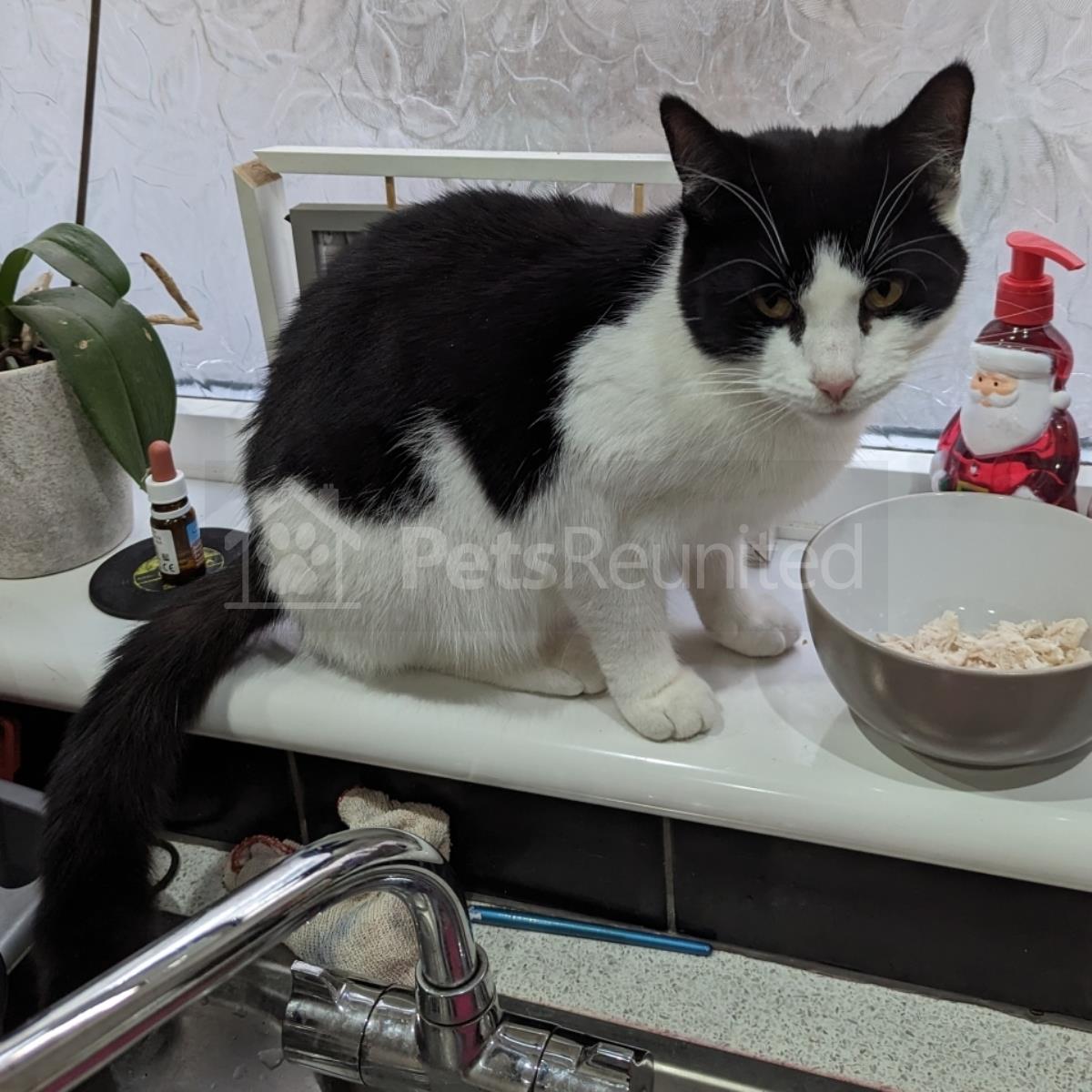 Black and white Domestic short-haired cat