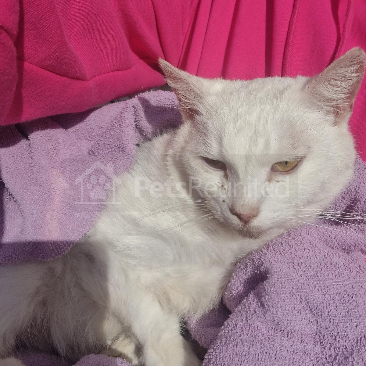 Grey/White Domestic long-haired cat