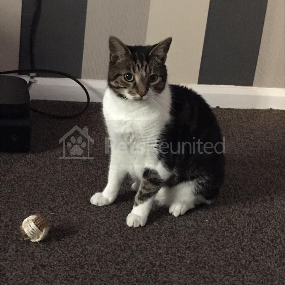 Tabby and white Domestic short-haired cat