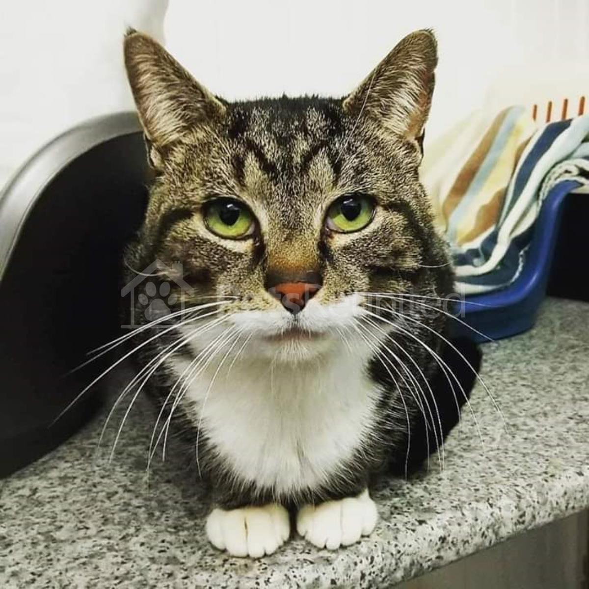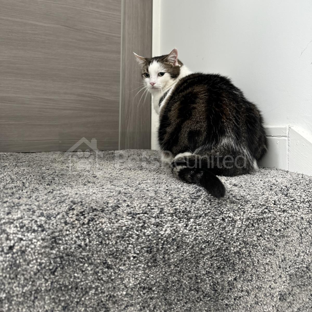 White, brown, black cat