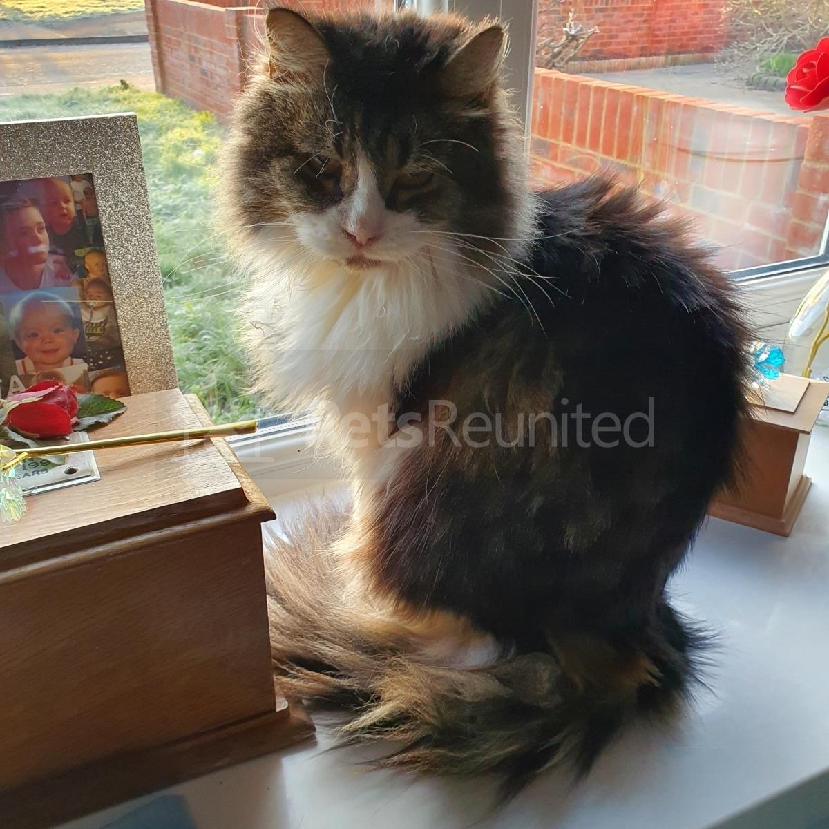 Grey/White Domestic long-haired cat
