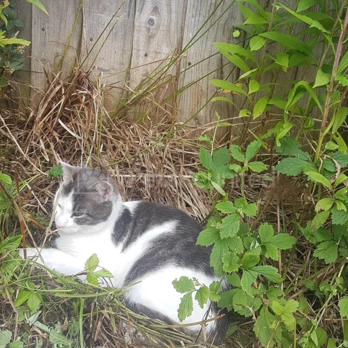 Grey/White Domestic short-haired cat