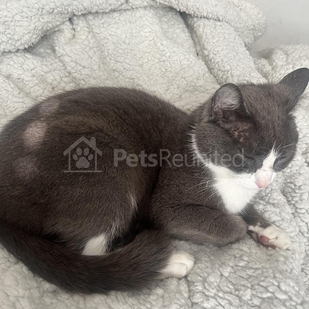 Grey/White Domestic short-haired cat