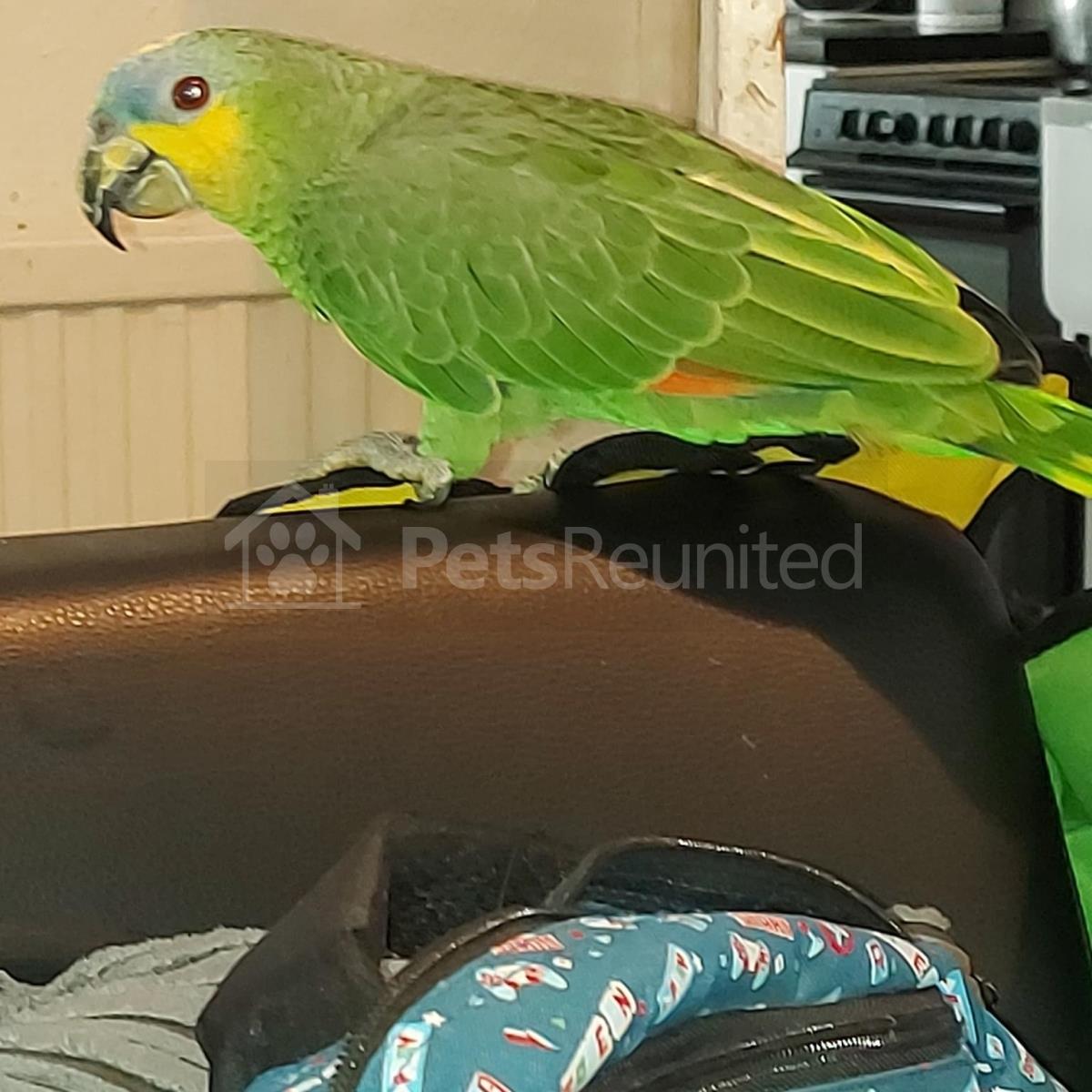 Green orange winged Amazon parrot