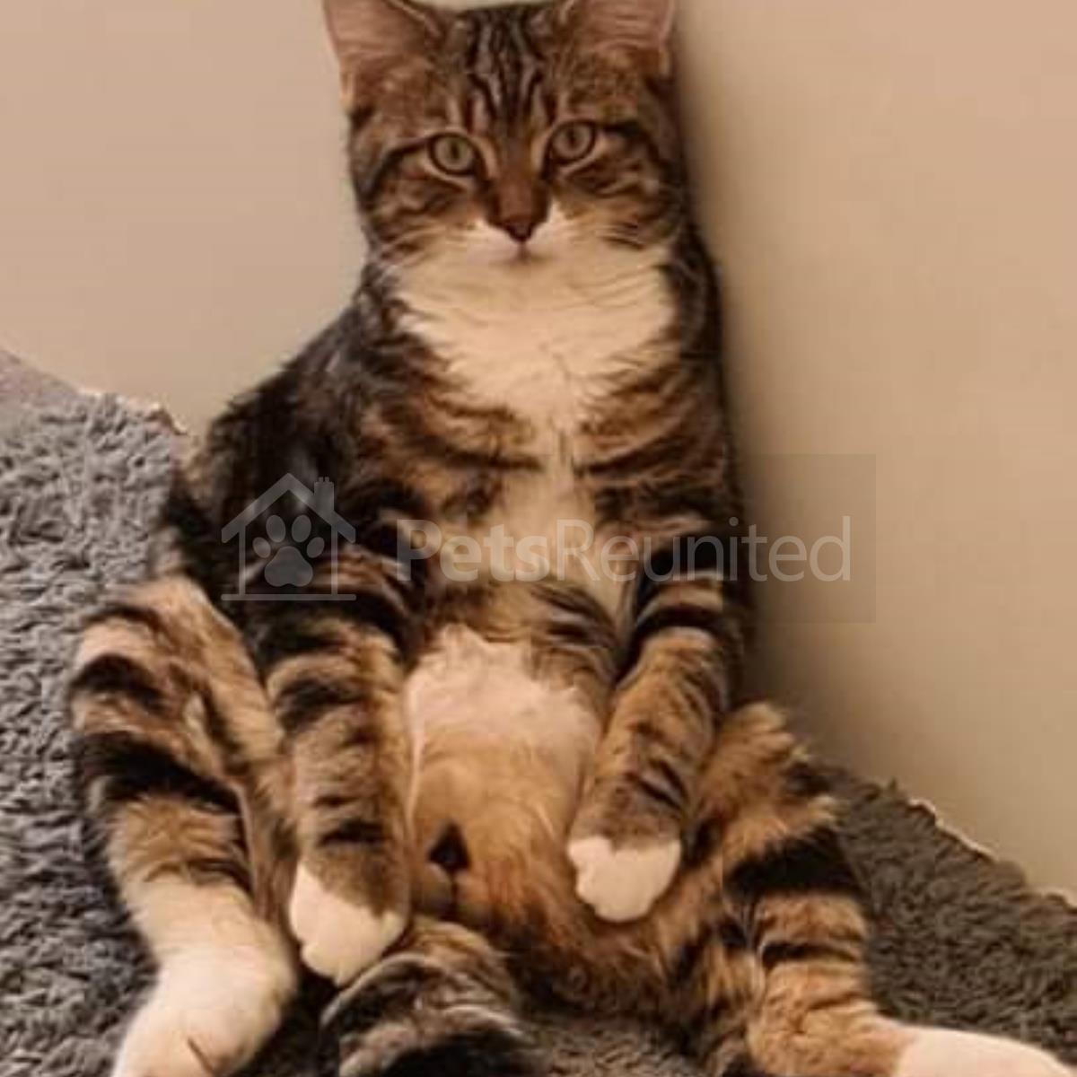 Tabby and white Domestic long-haired cat