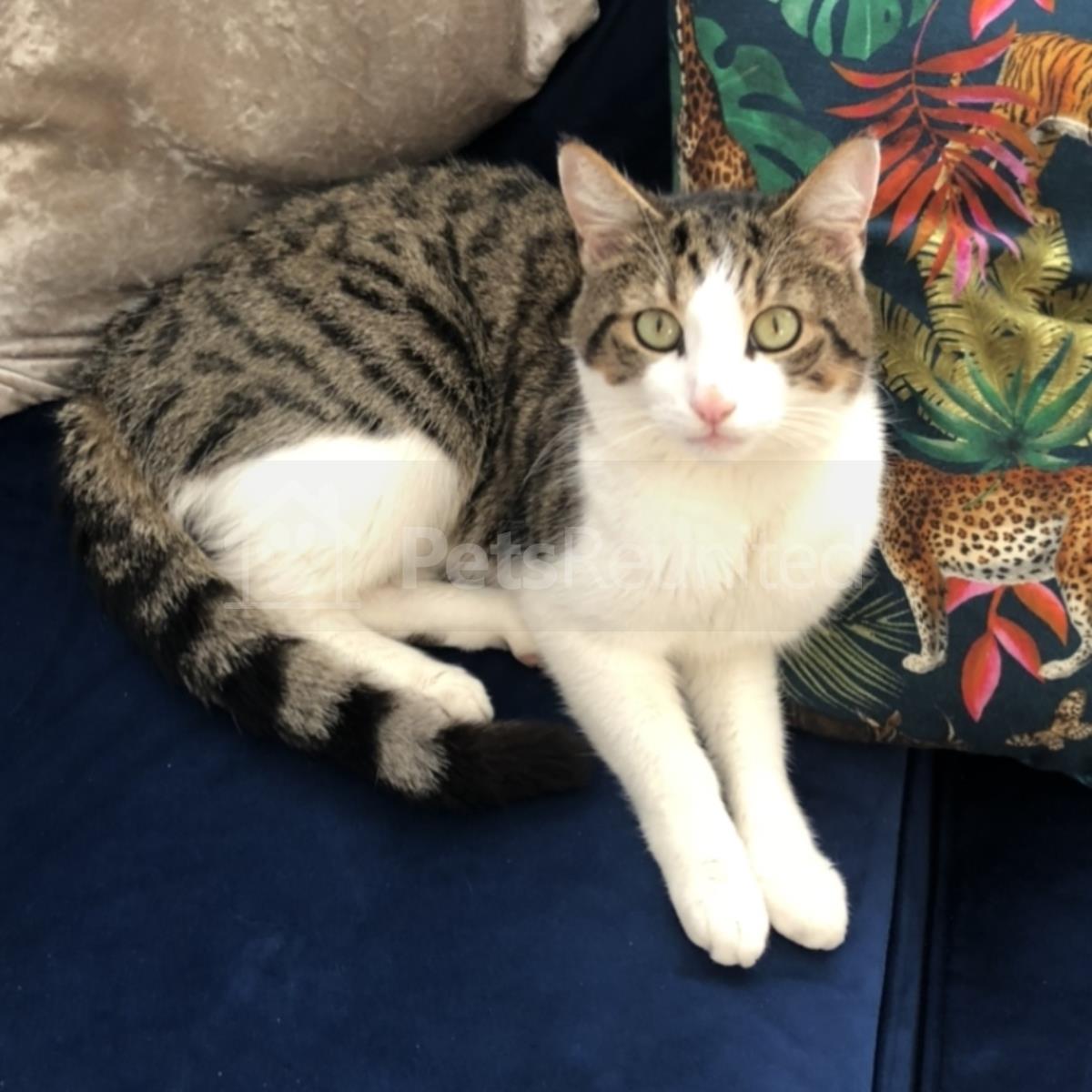 Tabby and white Domestic short-haired cat