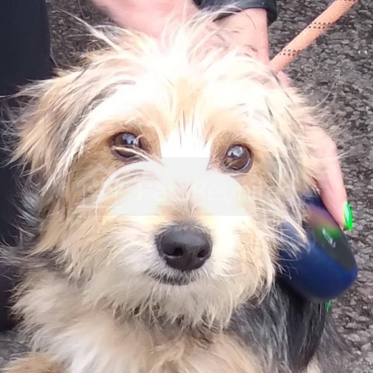 Tan and white Cross Breed dog