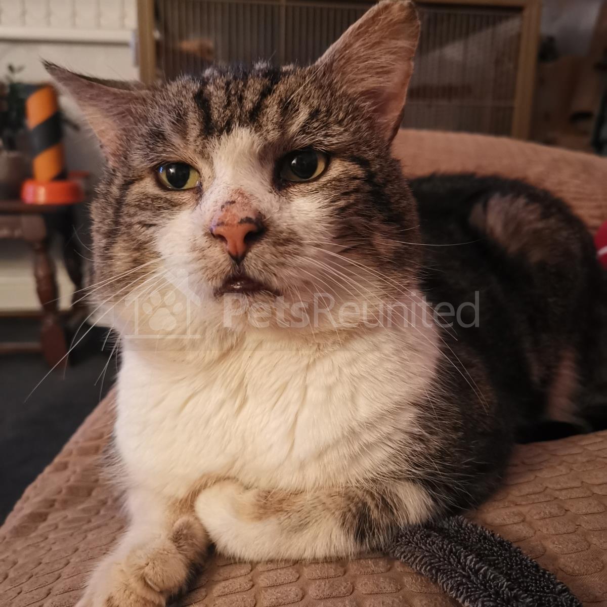 Tabby and white Domestic short-haired cat