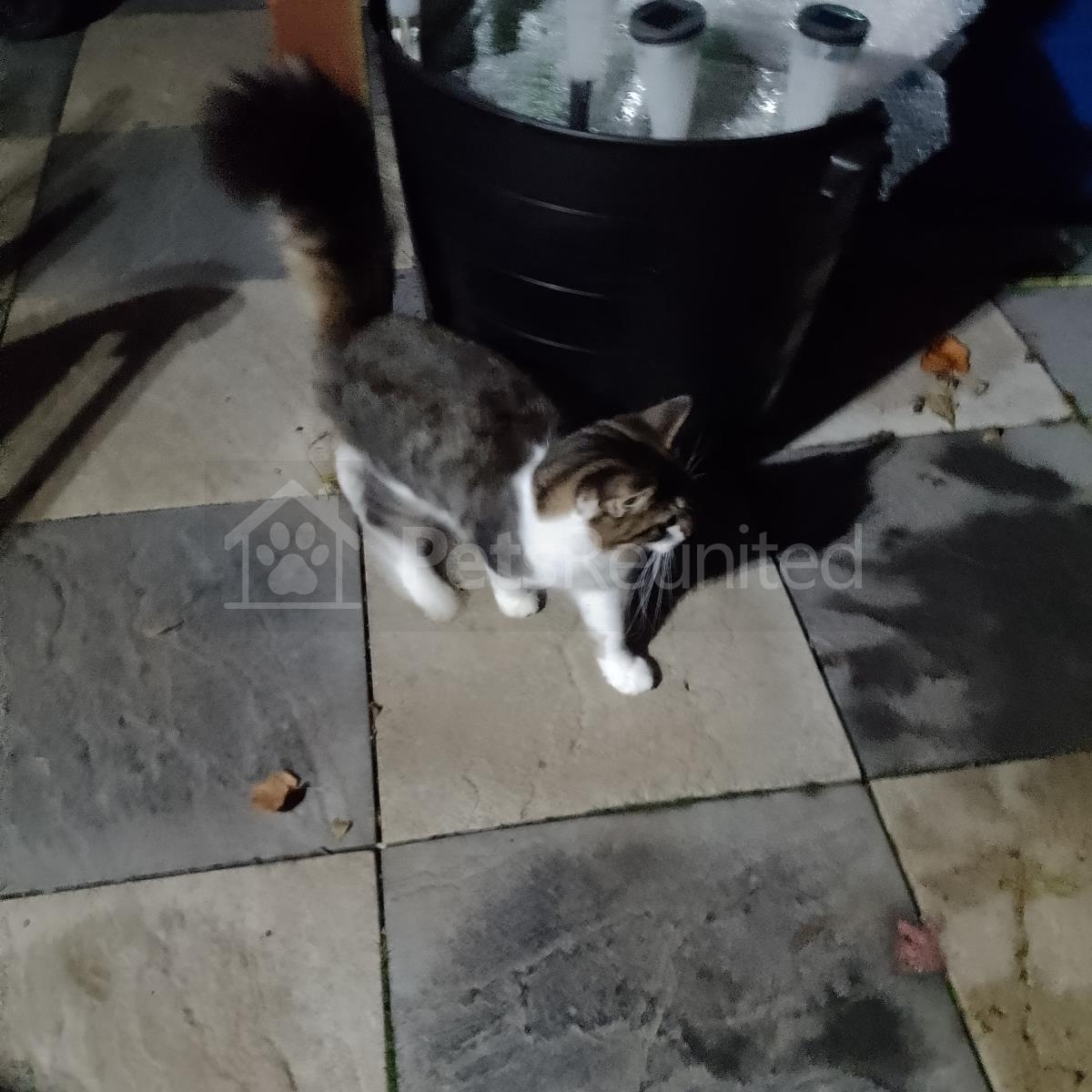 White with tabby tail cat