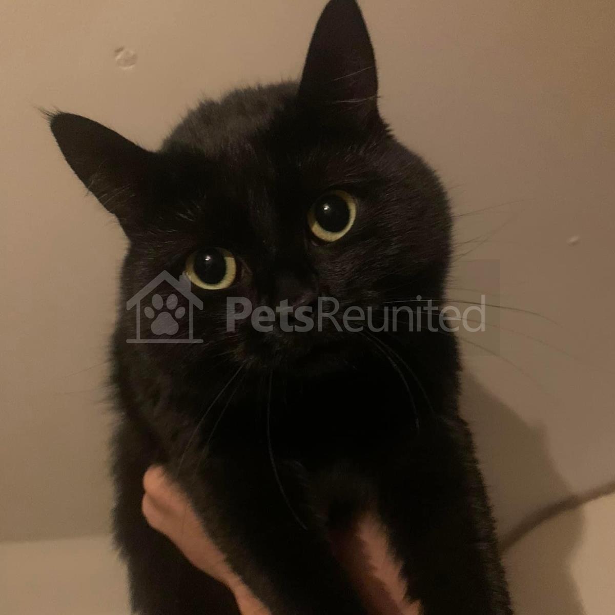 black (with a white patch on back) cat