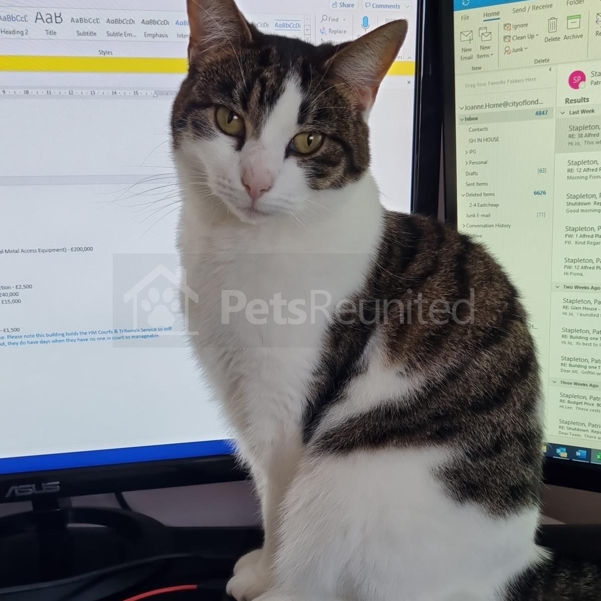 Tabby and white Domestic short-haired cat