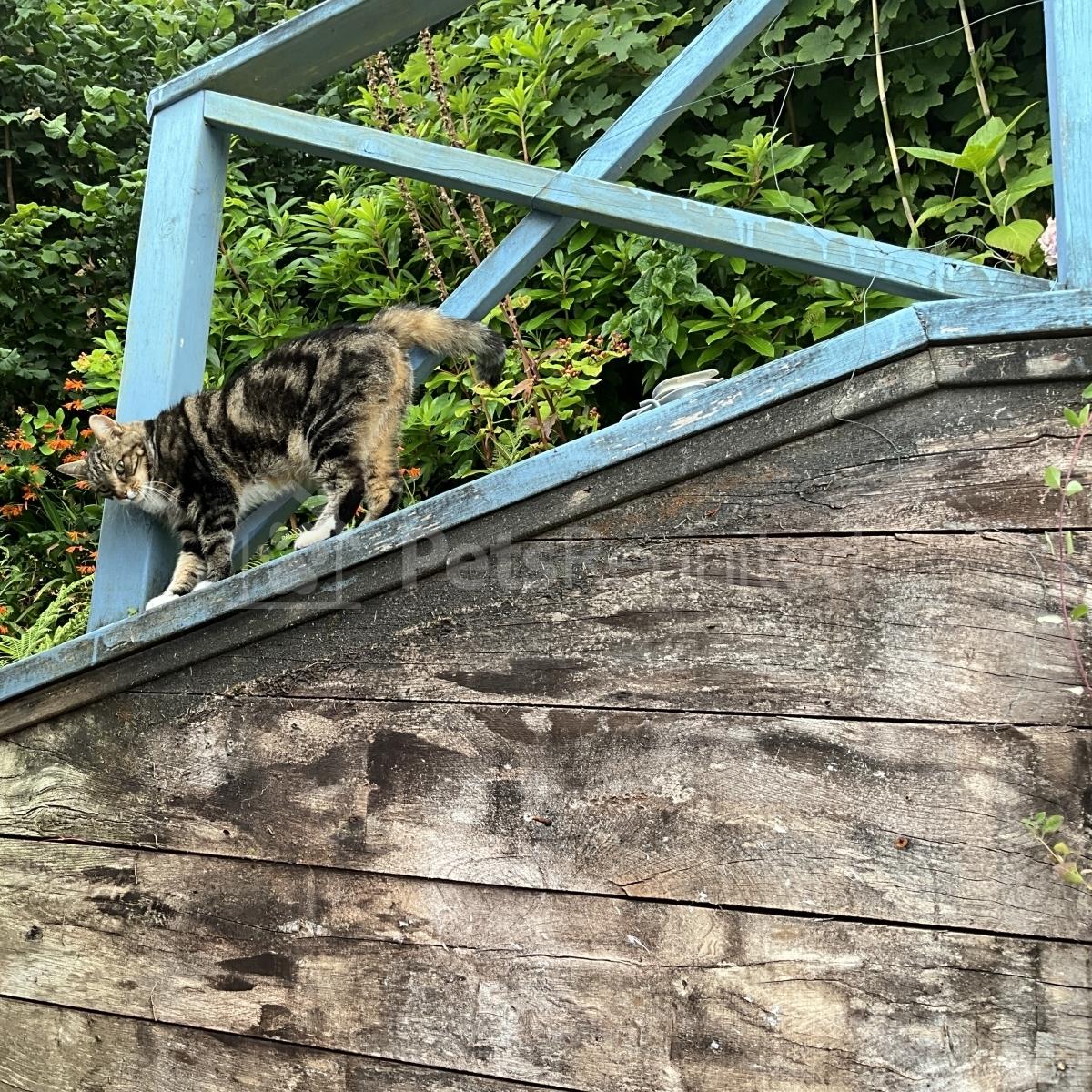 Tabby and white Domestic long-haired cat