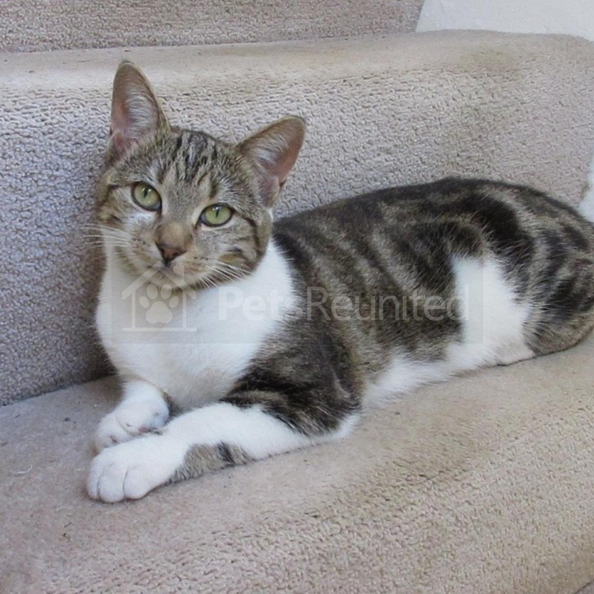 Tabby and white Domestic short-haired cat