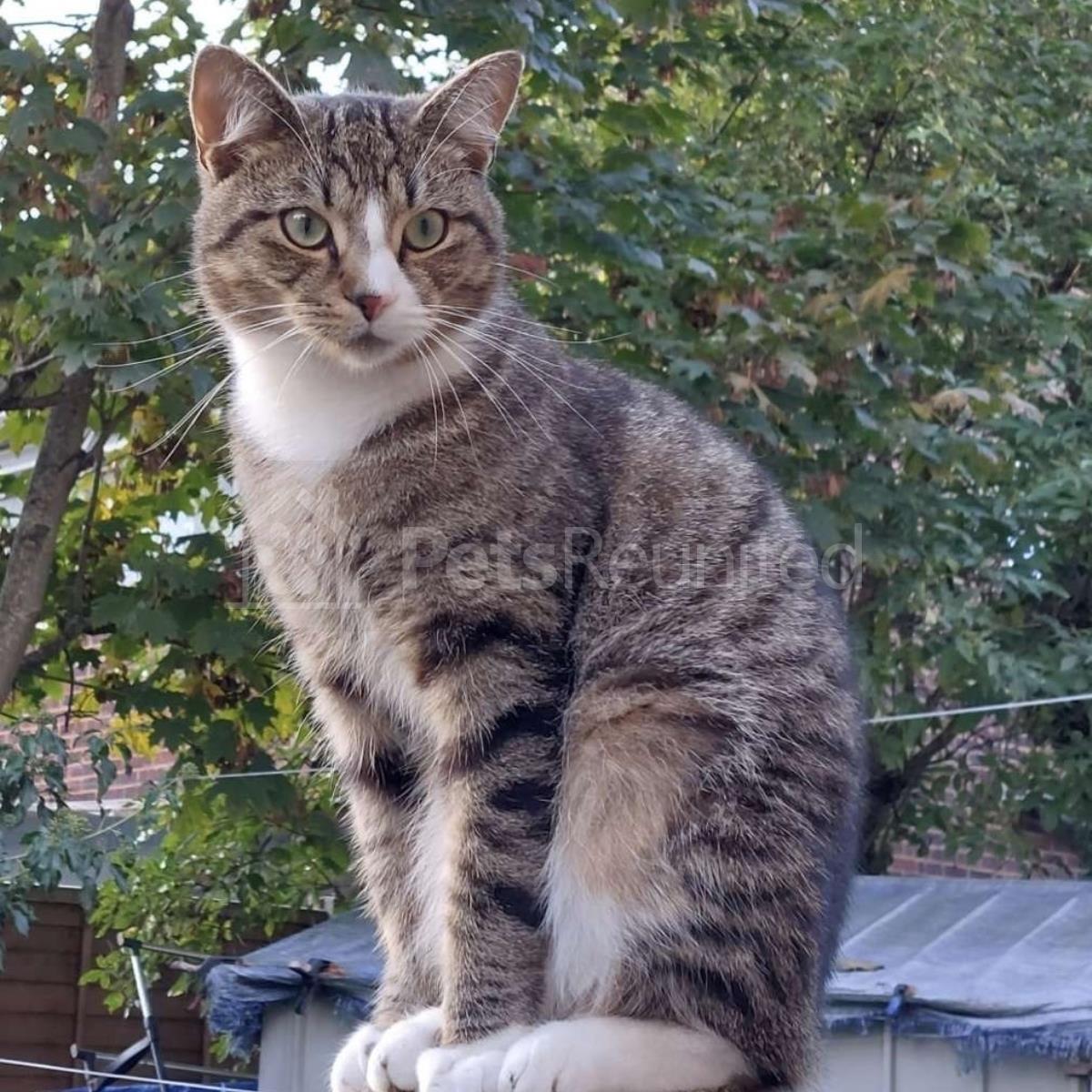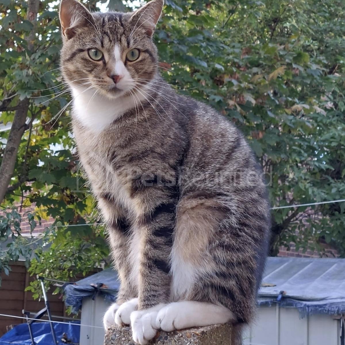 Tabby and white Domestic short-haired cat