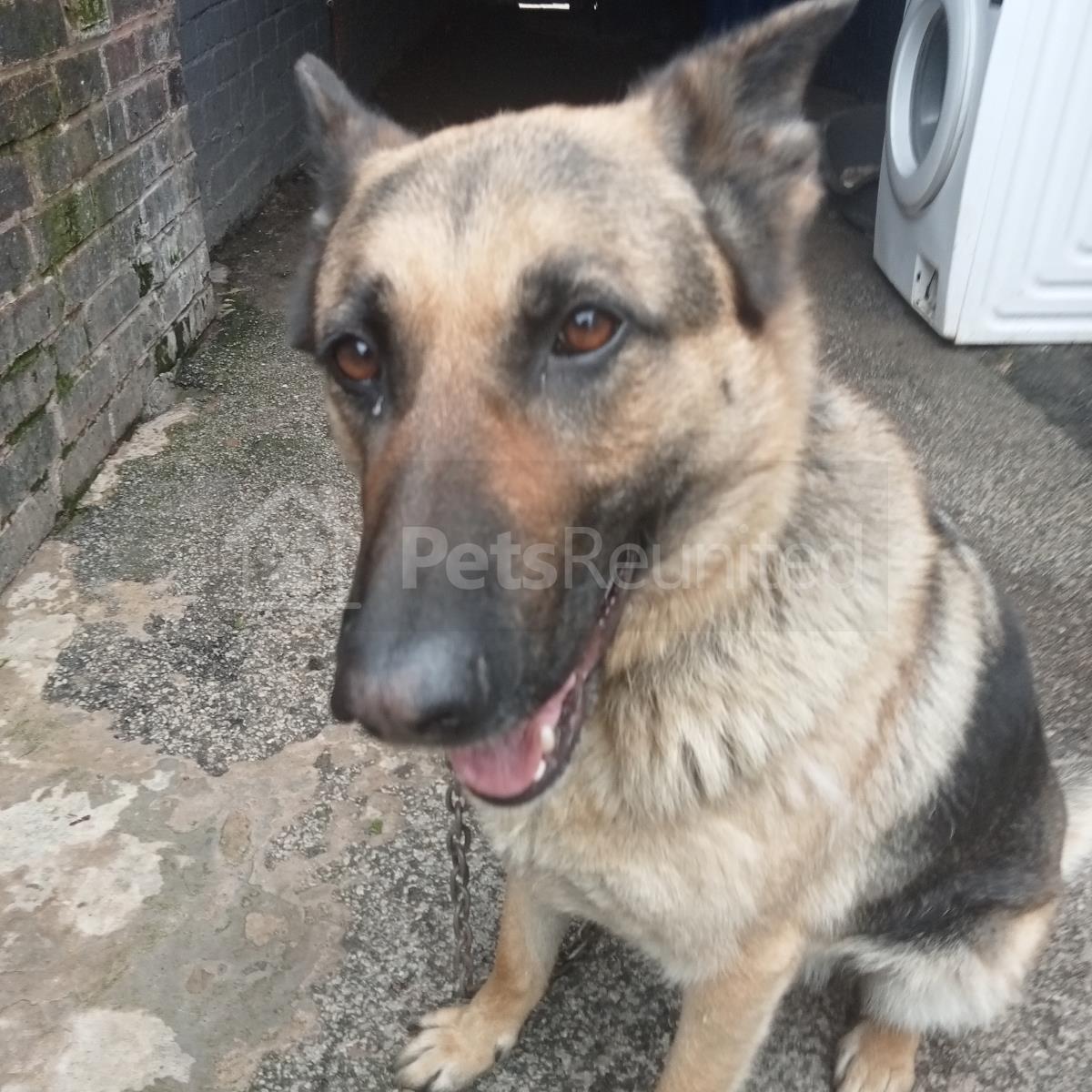 tan with clack patches on her German Shepherd Dog (Alsatian) dog