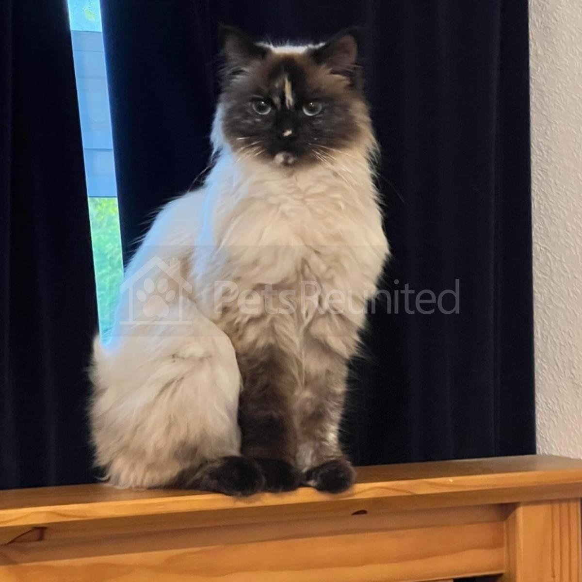 Grey/White Domestic long-haired cat