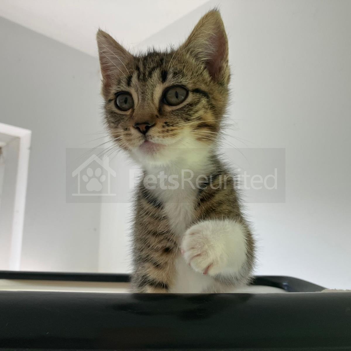 Tabby and white Domestic short-haired cat