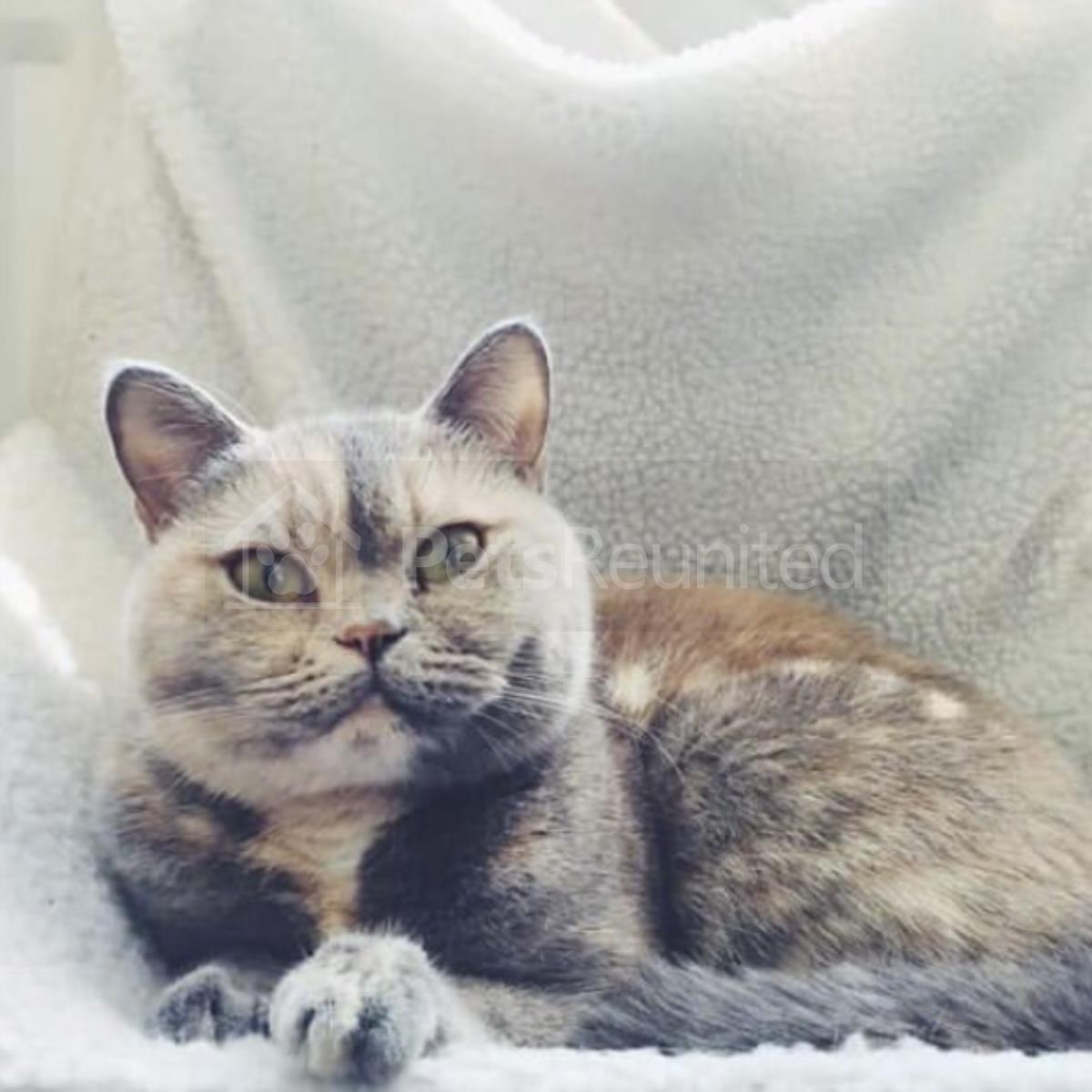 Grey, ginger, brown, white. cat