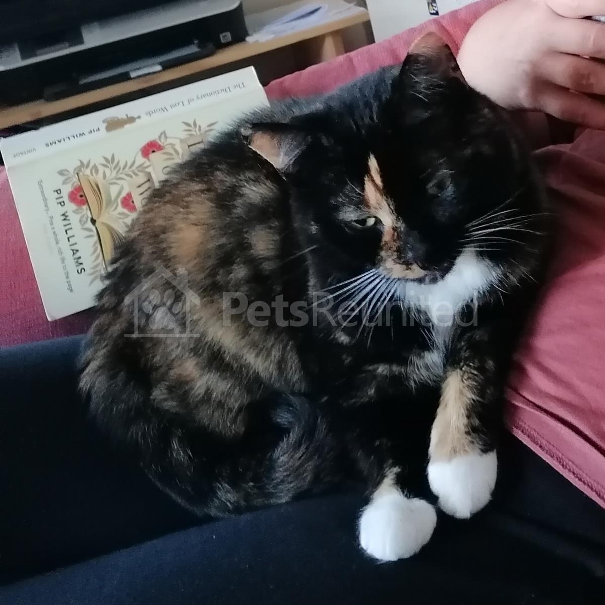 Tortoiseshell and white Domestic short-haired cat