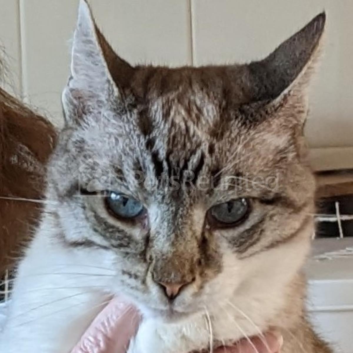 Beige, grey, white Domestic short-haired cat