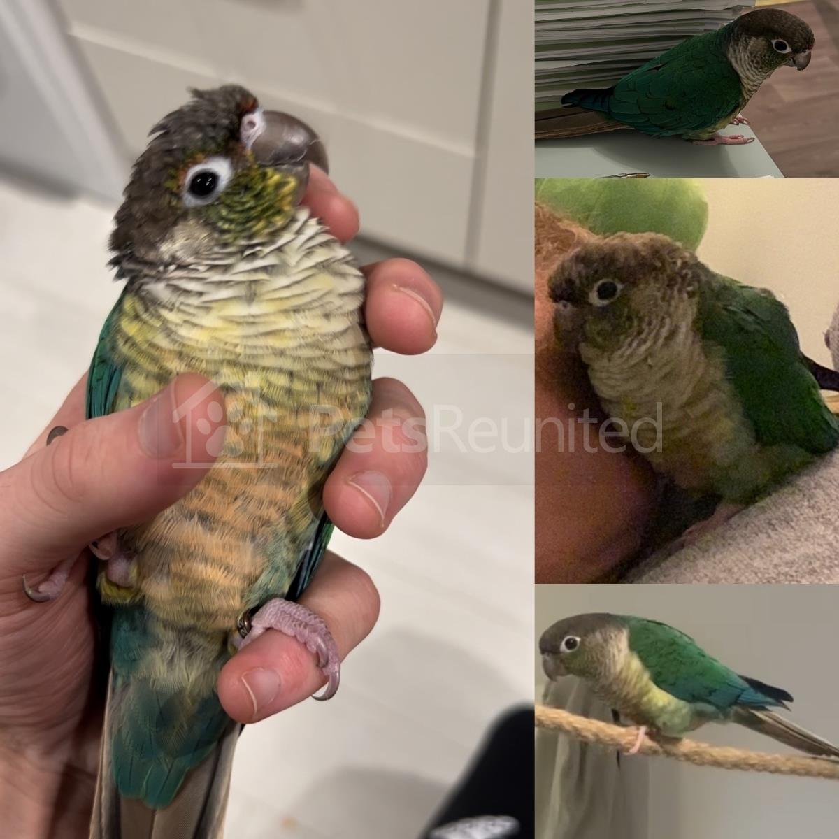 Green/turquoise Green-cheeked Conure parrot