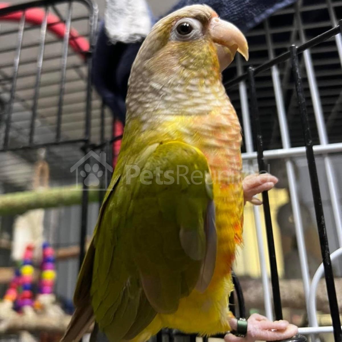 Green/turquoise Green-cheeked Conure parrot