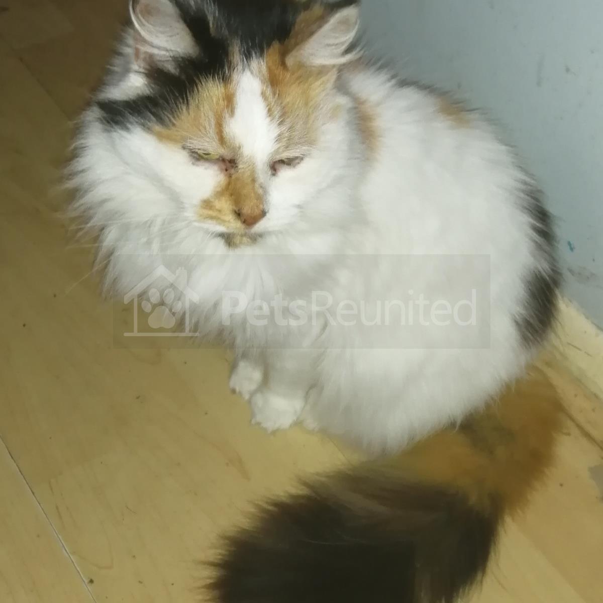 Tortoiseshell and white Domestic long-haired cat