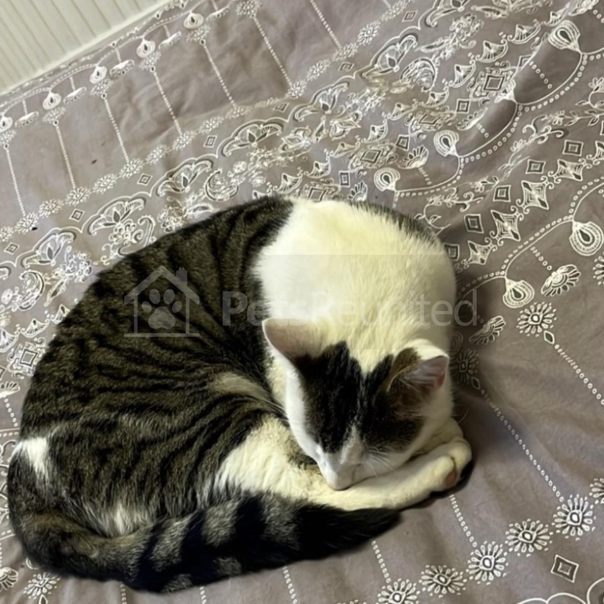 Tabby and white Domestic short-haired cat