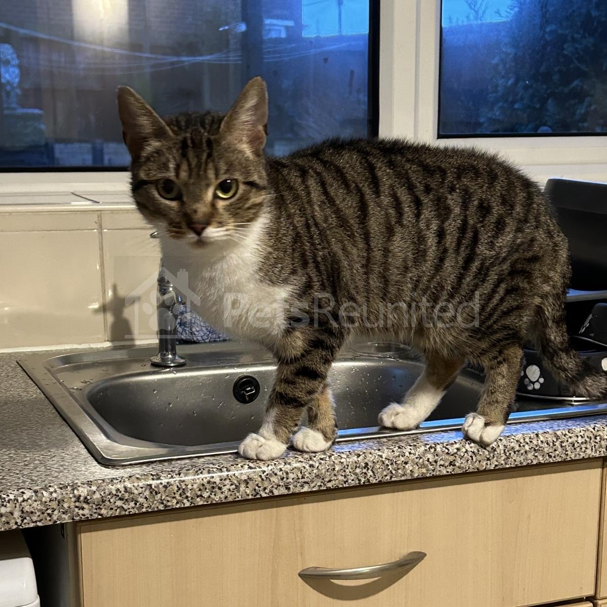 Tabby and white Domestic short-haired cat