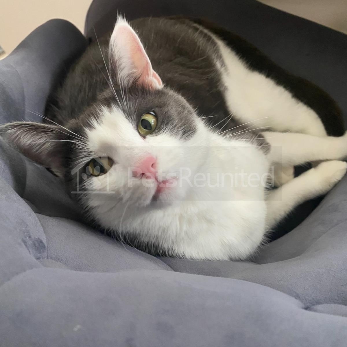 Grey/White Domestic short-haired cat