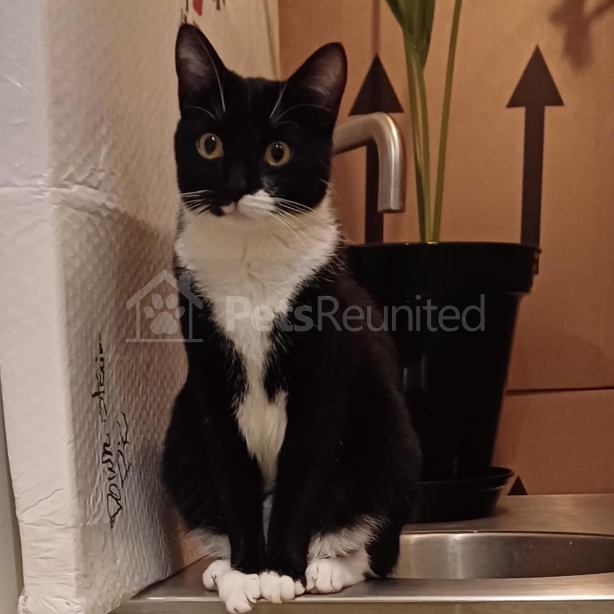 Black and white Domestic short-haired cat