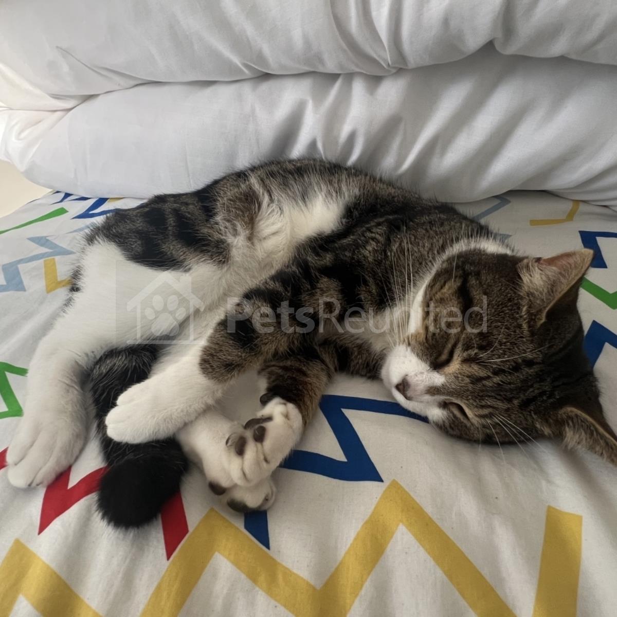 Grey and Black and White Domestic short-haired cat