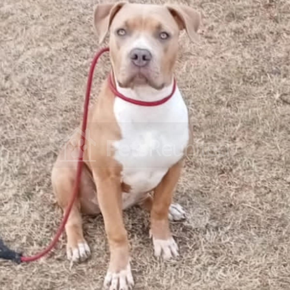 Tan and white American Bulldog dog