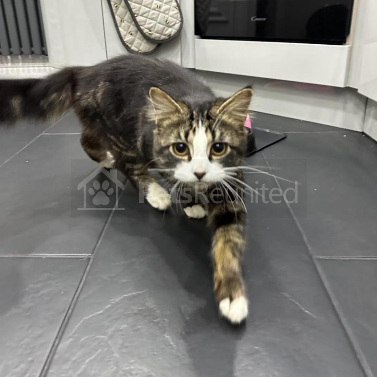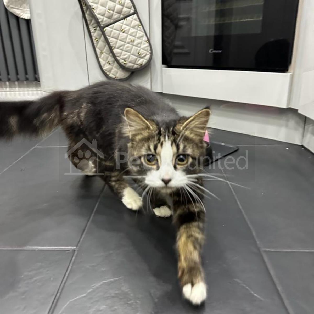 Tabby and white Domestic long-haired cat