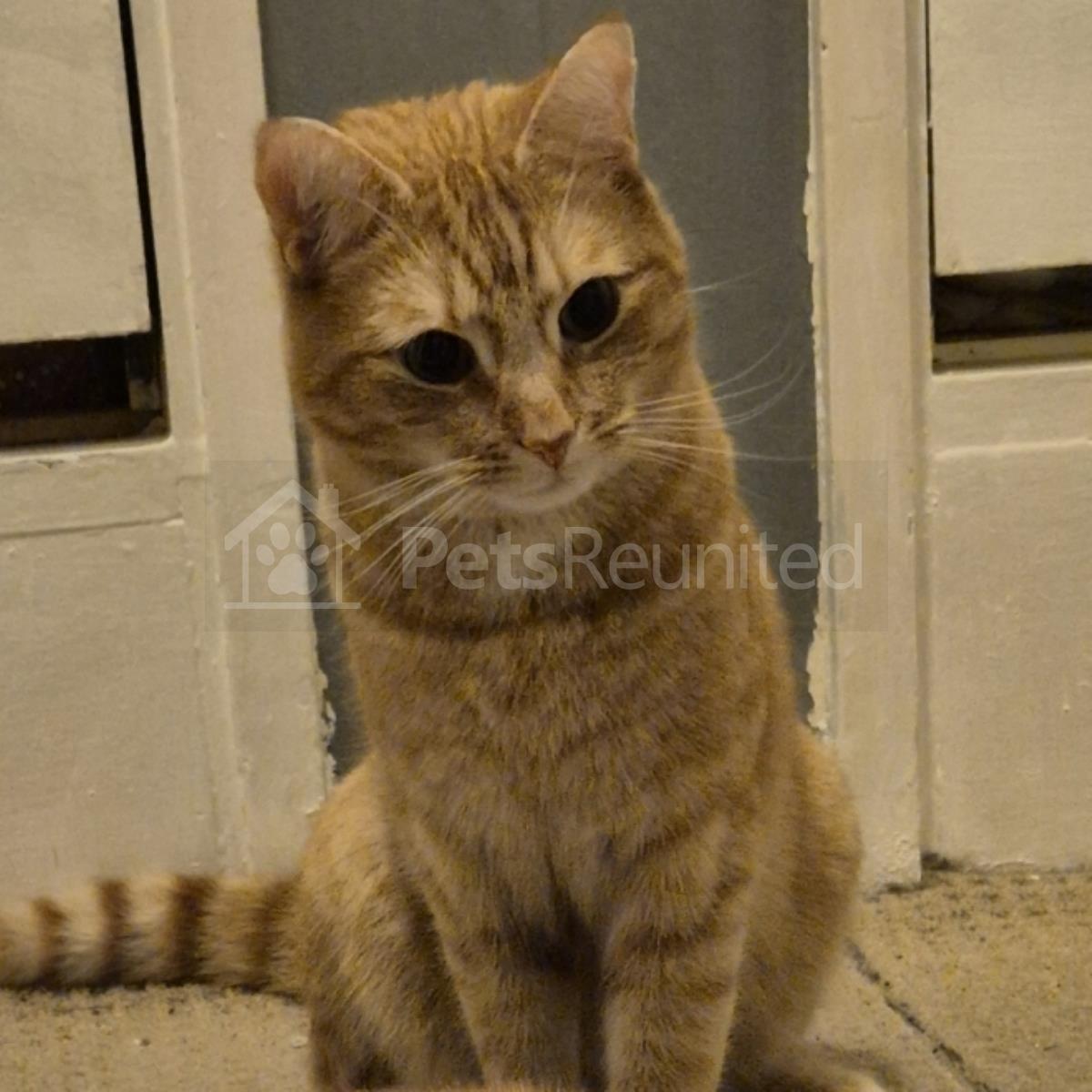 Ginger, white and dark grey Domestic short-haired cat