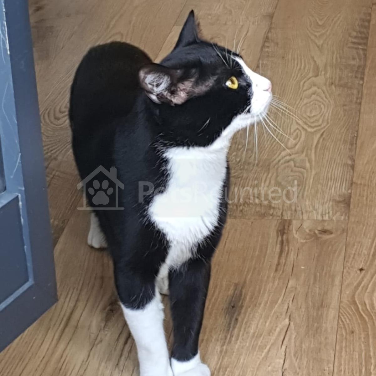 Black and white Domestic short-haired cat