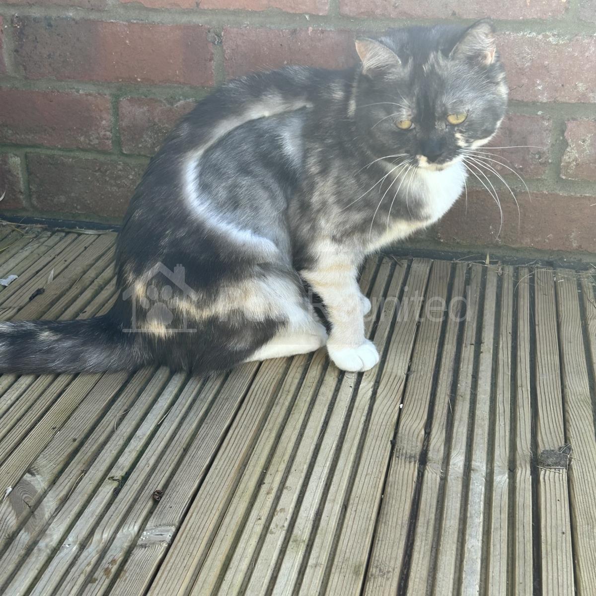 Tortoiseshell and white Domestic short-haired cat