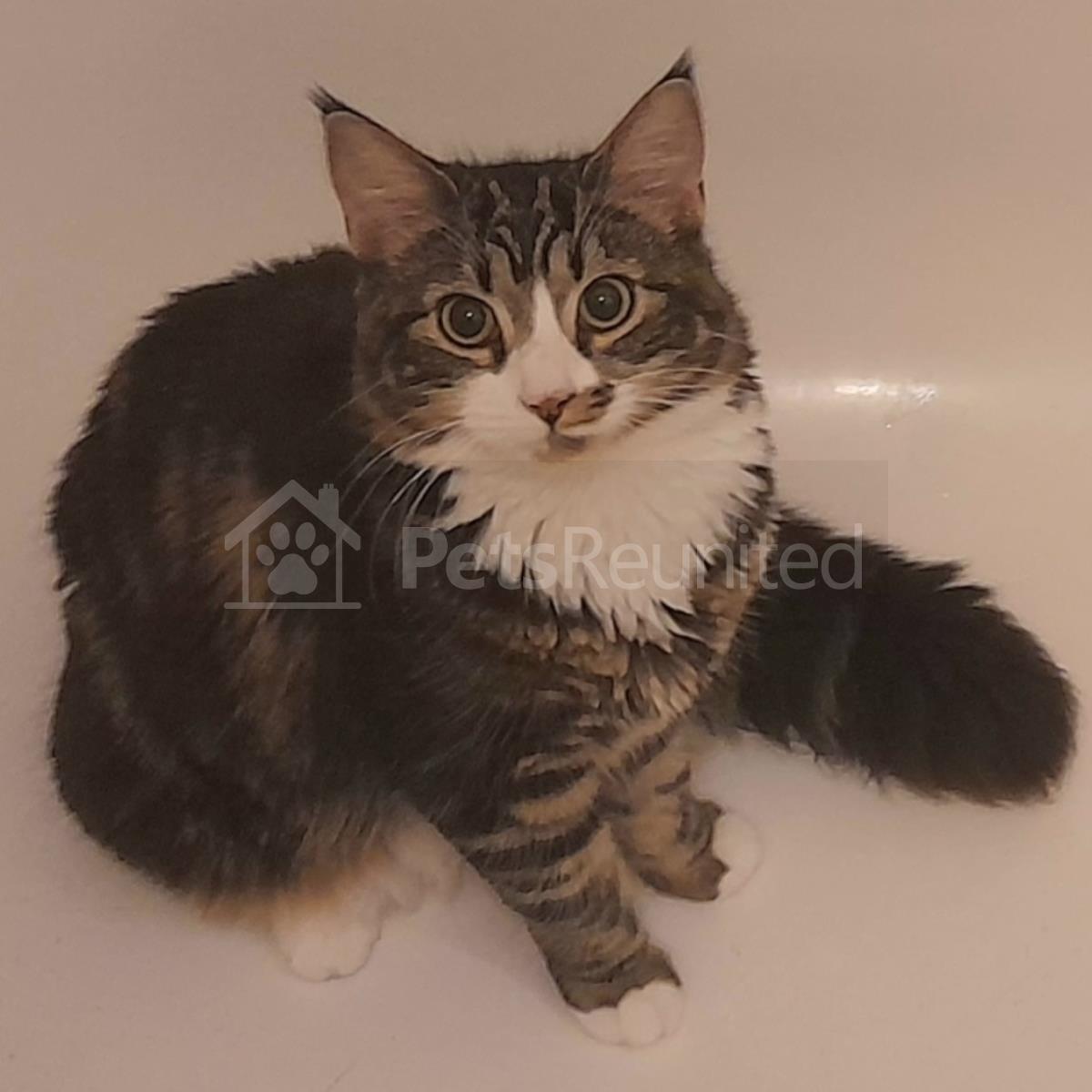 Tabby and white Domestic long-haired cat