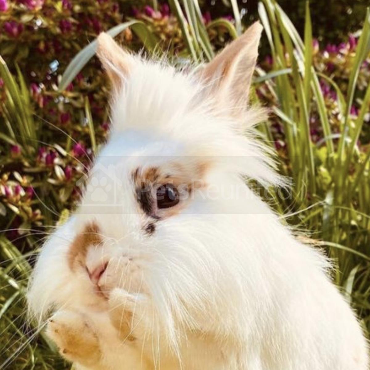 White mixed with English Spot Lionhead rabbit