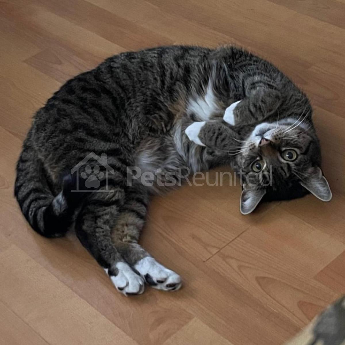 Tabby and white Domestic short-haired cat